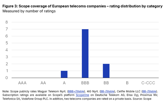 The credit profiles of telecoms companies rated by Scope are concentrated in the BBB category and have shown a consistent positive ratings drift over the last two years. We believe credit profiles will remain stable or improve further over the next few years.