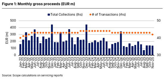 This report shows the performance of a static universe of Italian NPL securitisations rated by Scope and is based on monthly servicing reports available to November 2025.
