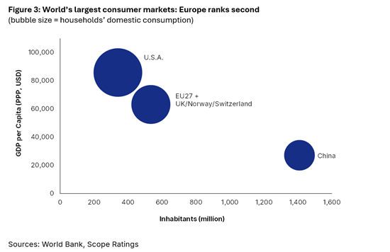 Owners of Chinese brands now consider Europe to be a strategic region due to the saturation of the domestic market and the more limited prospects for growth in the US market since the advent of the Trump Administration’s new tariff regime. This matters on a global market: Europe is the second largest consumer market globally, behind the US (Figure 3).