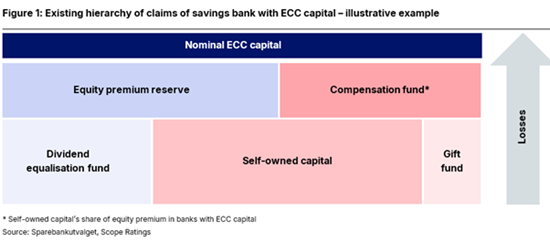 In line with the savings bank tradition, this is intended to preserve the ‘vote’ of the self-owned or ownerless capital for depositors, employees and, in some instances, local Government representatives. Maintaining the cap on ECC investor representation despite the change in priority may have a negative impact on the market value of equity and the ability of savings banks to raise equity in distressed situations. Consequently, this part of the policy proposal could have negative credit implications.
