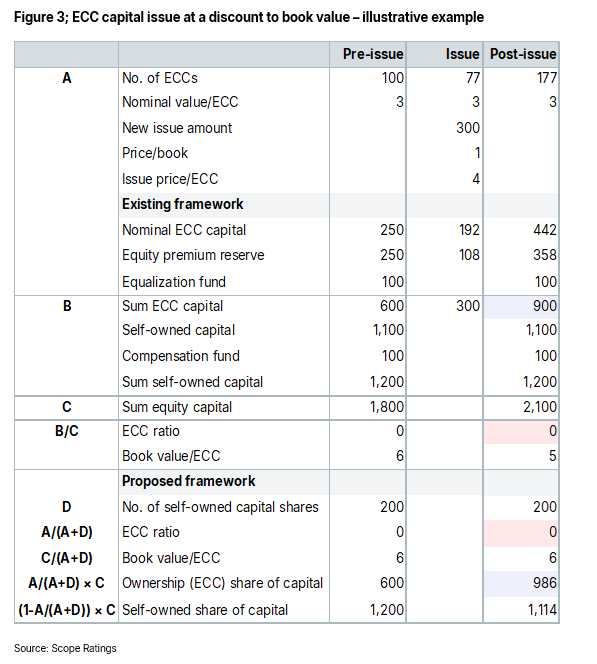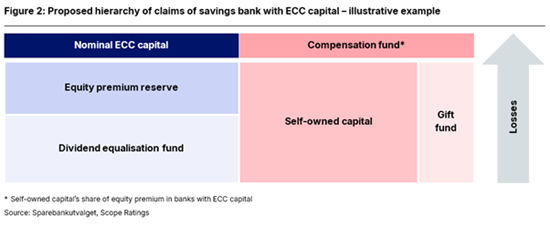 Under the equity share mode (ESM), the Savings Bank Commission’s key recommendation (Figure 2), ECC capital will rank pari passu with self-owned capital and require the creation of nominal ‘self-owned capital shares,’ effectively synthetic ECCs.